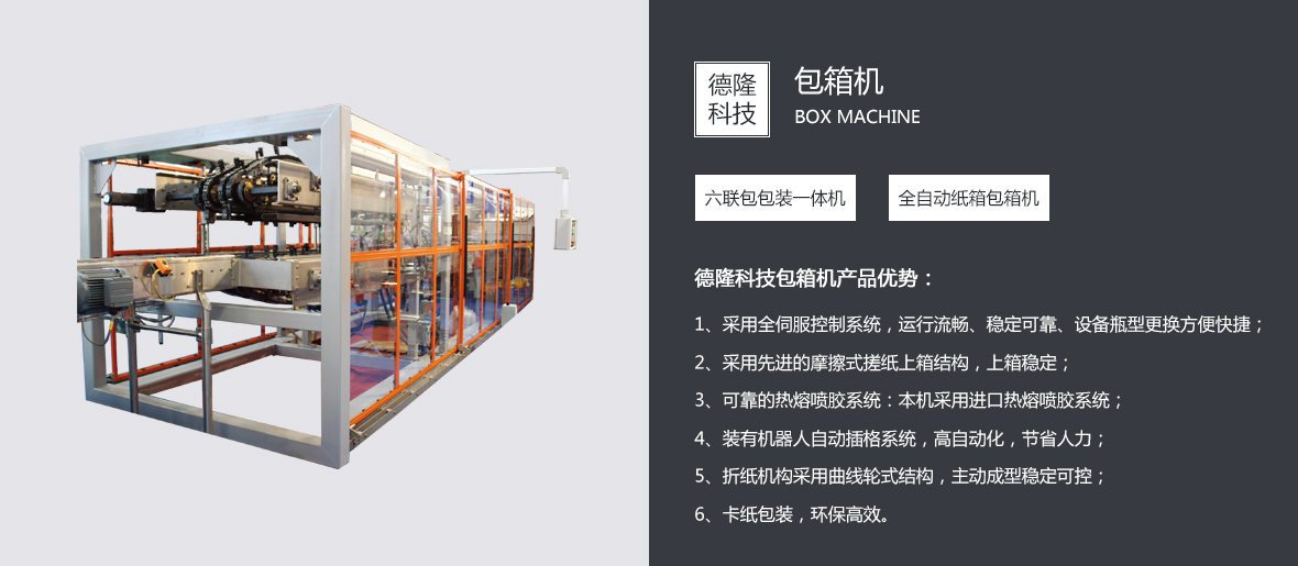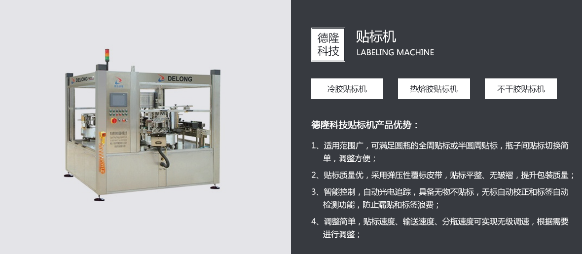 青島德隆自1995年創(chuàng)建以來,始終秉承創(chuàng)新與發(fā)展的優(yōu)良傳統(tǒng),依靠技術(shù)與服務(wù)贏得客戶的信賴與尊重。在貼標(biāo)機(jī)向?qū)W⒒⒍嘈袠I(yè)領(lǐng)域發(fā)展并成就了中國(guó)異型瓶貼標(biāo)市場(chǎng)的經(jīng)典之后,應(yīng)市場(chǎng)不斷變化的客戶需求,優(yōu)化產(chǎn)品結(jié)構(gòu),引進(jìn)吸收國(guó)內(nèi)外的流體包裝設(shè)備理念,在貼標(biāo)機(jī)專業(yè)化地位穩(wěn)固的前提下,逐步實(shí)現(xiàn)關(guān)聯(lián)產(chǎn)品的多元化。   目前,青島德隆已經(jīng)成為國(guó)內(nèi)能同時(shí)滿足圓瓶、方瓶、扁瓶、錐度瓶、球形瓶、定位瓶等瓶型的高、中、低速多功能冷(熱)膠貼標(biāo)領(lǐng)域的廠家。隨著碼/卸(瓶/罐)垛機(jī)、沖瓶機(jī)、灌裝擠(旋/壓)蓋機(jī)、全自動(dòng)紙箱包箱設(shè)備、排序機(jī)、機(jī)器人碼/卸垛設(shè)備、激光噴碼機(jī)的運(yùn)行成功,一個(gè)真正的流體包裝設(shè)備方案解決專家已經(jīng)成熟。   青島德隆集團(tuán)的···......[查看詳情]